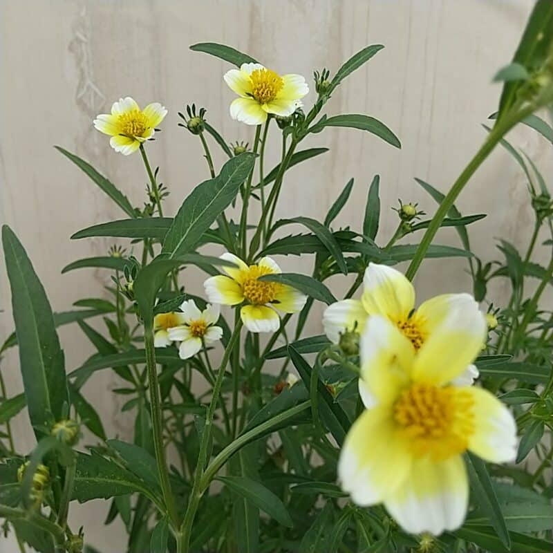 とても丈夫で育てやすく、暑さ寒さに強い宿根草です。この季節に黄色の花色が鮮やかに彩っています。一重咲きの5枚の花びらの先端が白い色が入っています。最近では白花も出回るようになりました。晩秋の風に揺れる姿はとても可愛らしいです。